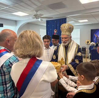 The festal Divine Liturgy was presided over by our Father and Hierarch, His Grace Kyr Irinej, Bishop of Washington – New York and Eastern America of the Serbian Orthodox Church. Concelebrating with His Grace were Protopresbyter Aleksandar Lekić of Budva and the local parish priest, Presbyter-Economos Vladislav Golić. Our temporary home was filled with faithful parishioners, numerous children, and friends of the parish, bearing witness to the growing life and unity of our young community.